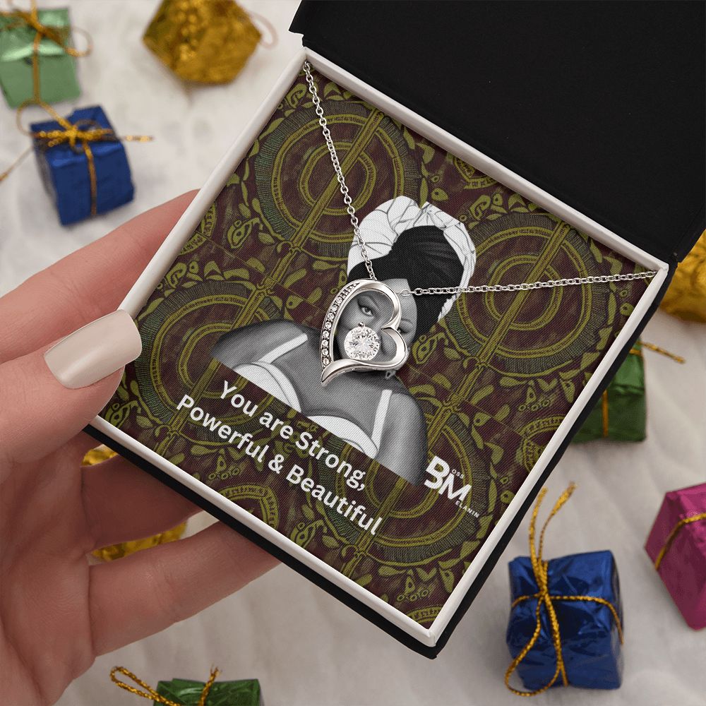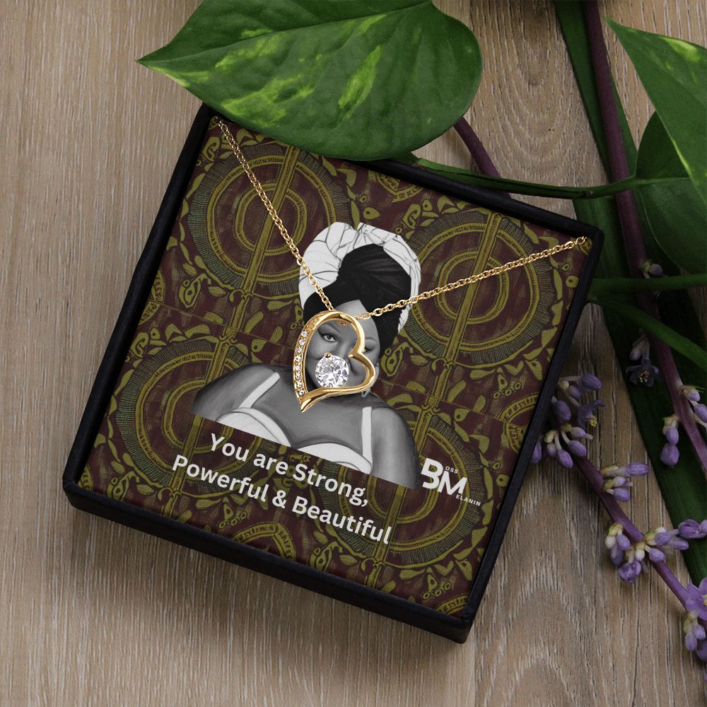 Beautiful, strong Black Woman, Melanin Black Woman special Heart Shaped White Gold Plated Necklace with unique Gift card message