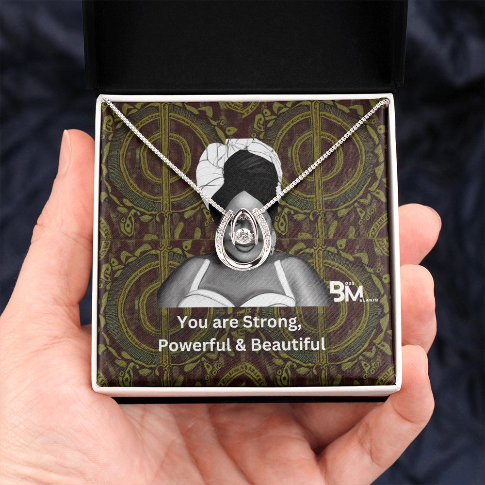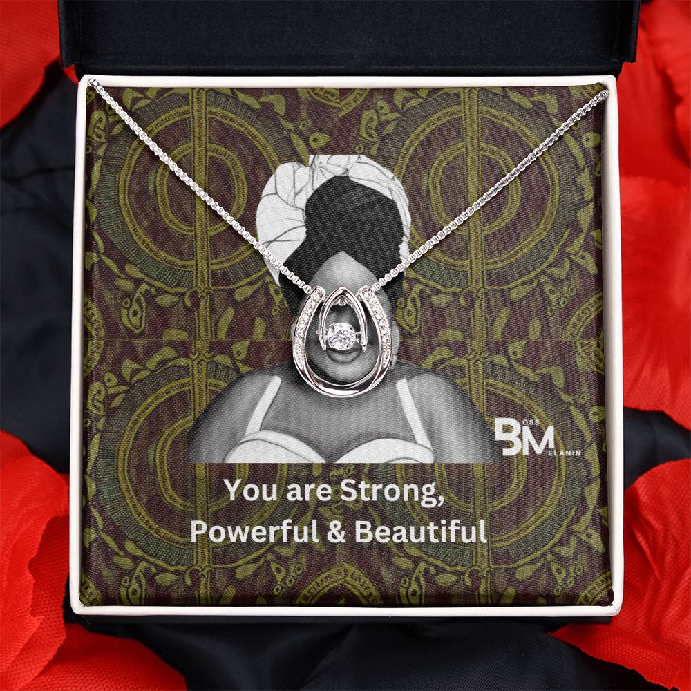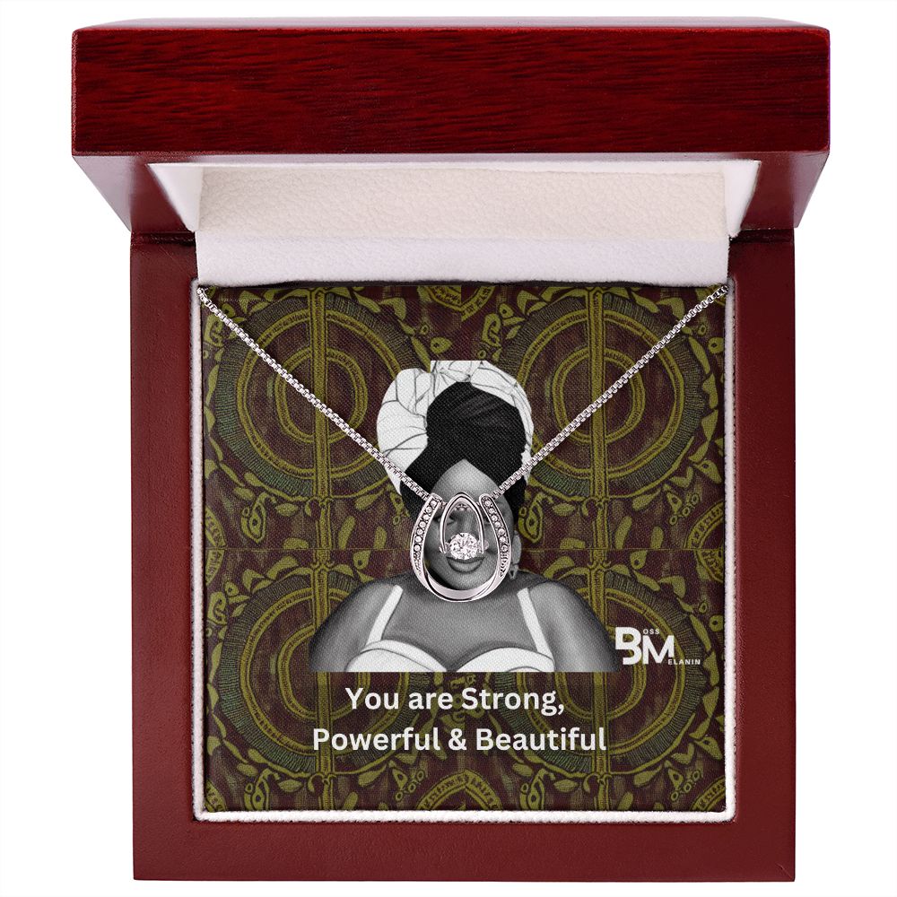 White gold dipped high quality crystal encrusted Love pendant & necklace chain with Zirconia for Beautiful, strong Black Woman, Melanin Black woman, with unique Gift card message
