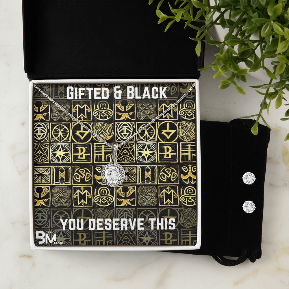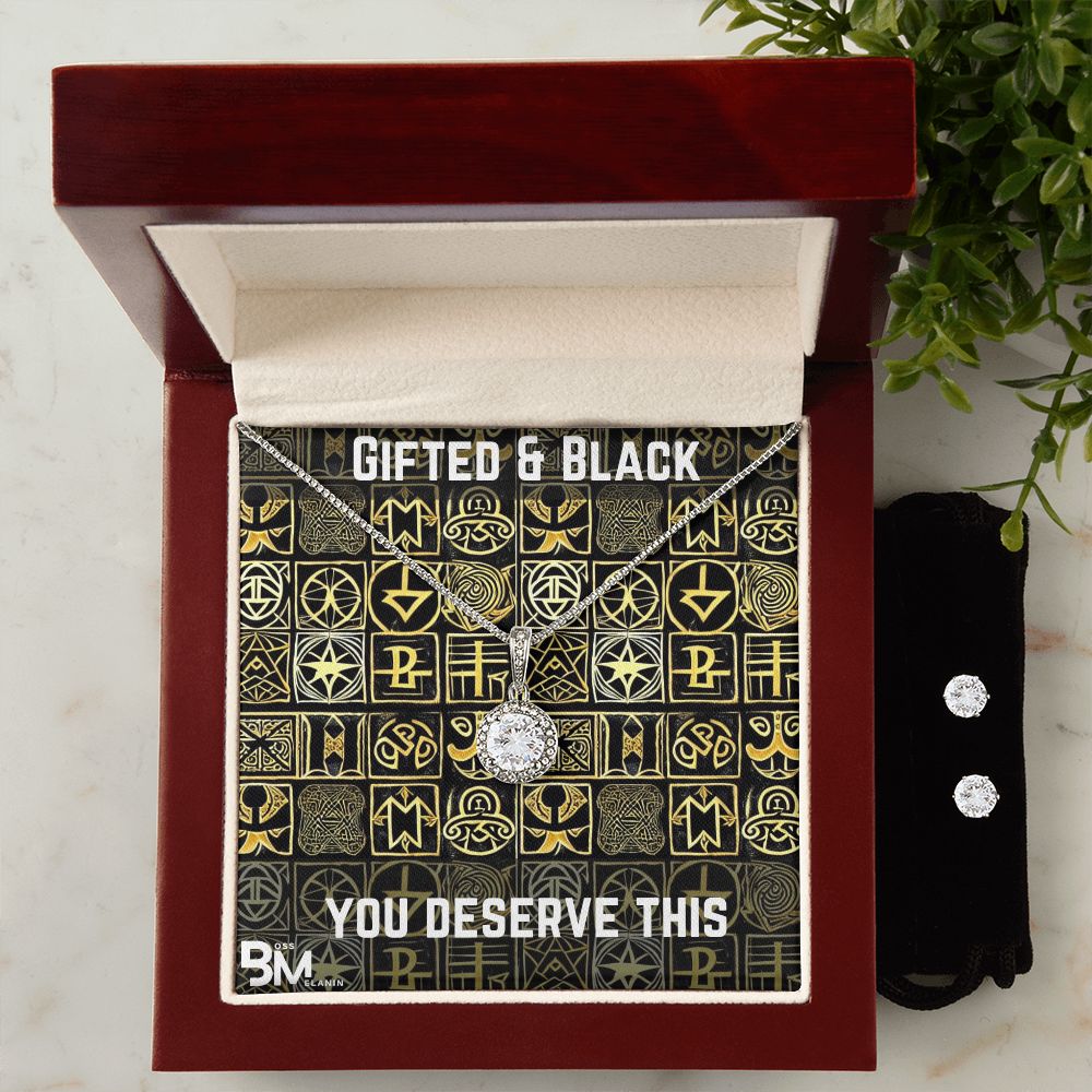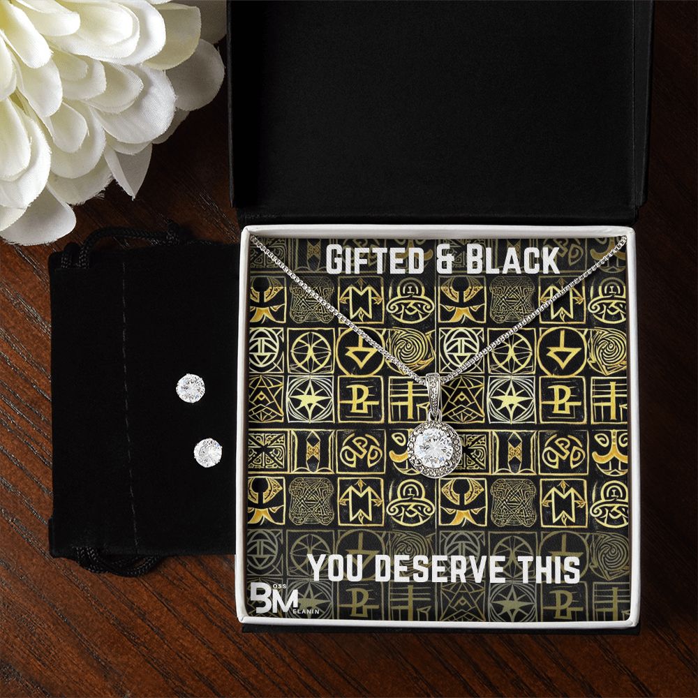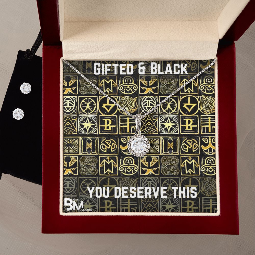 Matching Pendant and Earrings - White gold dipped high quality crystal encrusted Eternal hope pendant & necklace, Earrings & chain for Beautiful, strong Black Woman, Melanin Black woman, with unique Gift card message