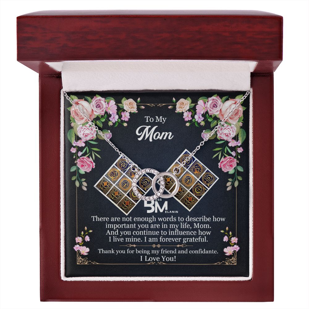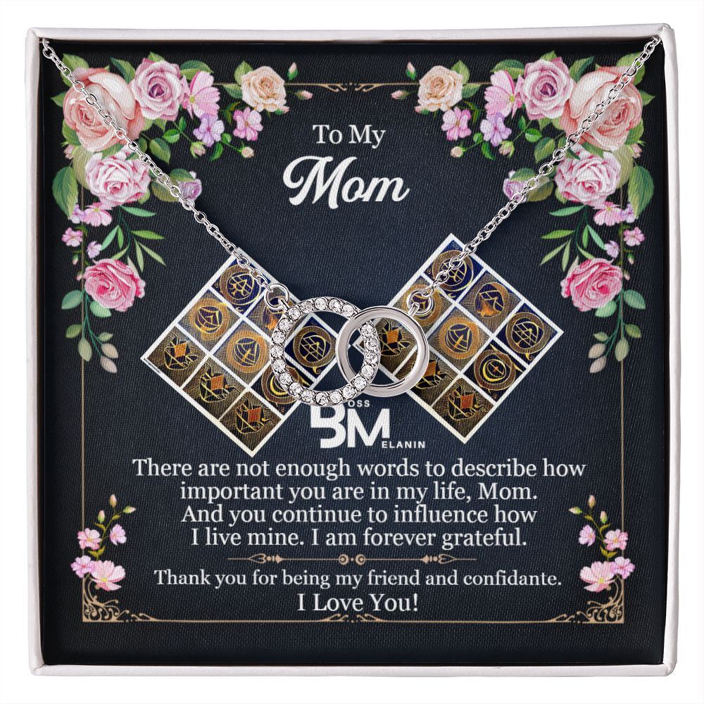 Neckless with interlocking circles, white gold dipped and encrusted with Zirconia - Zirconia for Beautiful, strong Black Woman, Melanin Black woman, with unique Gift card message