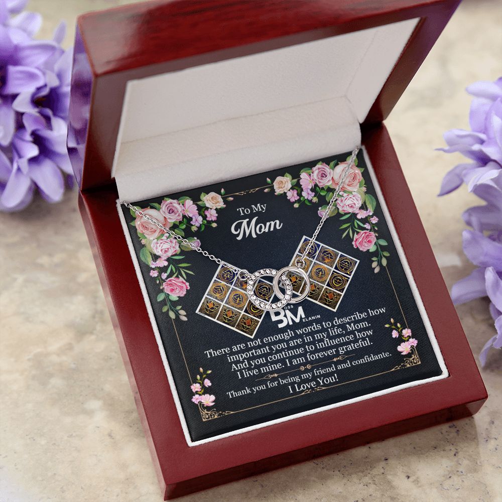 Perfect Mother's Gift - Neckless with interlocking circles, white gold dipped and encrusted with Zirconia