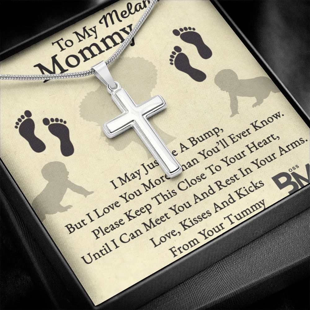 Stainless Steel high quality Gift chain for Beautiful, strong Pregnant Black Woman, Melanin Black Woman special stainless steel cross & Necklace with unique Gift card message for pregnant black woman.