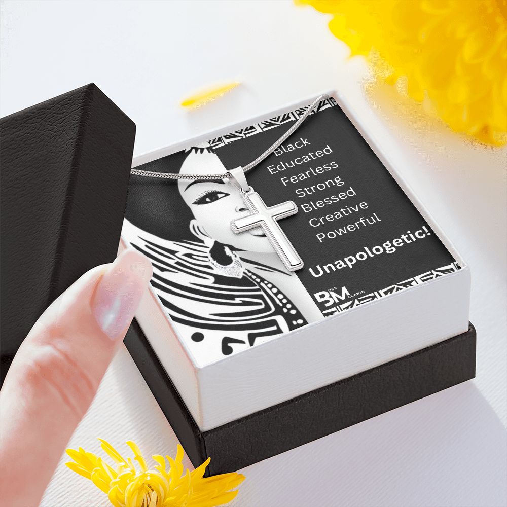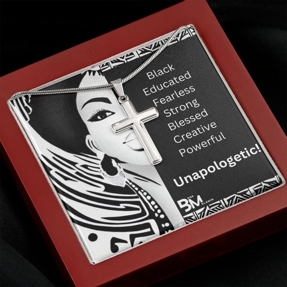 Stainless Steel high quality Gift cross & chain for Beautiful, Educated, Fearless strong Black Woman