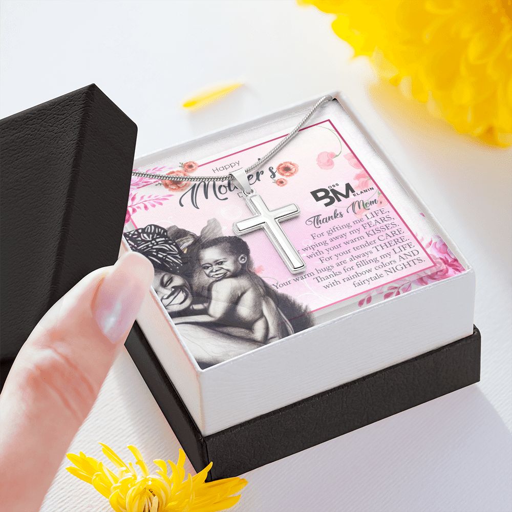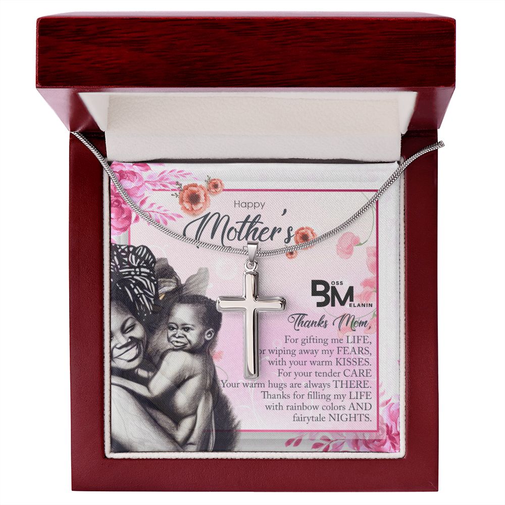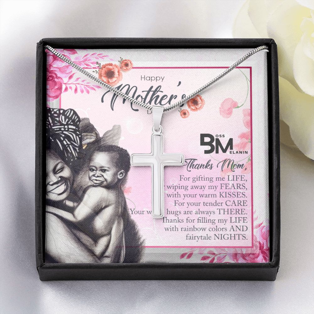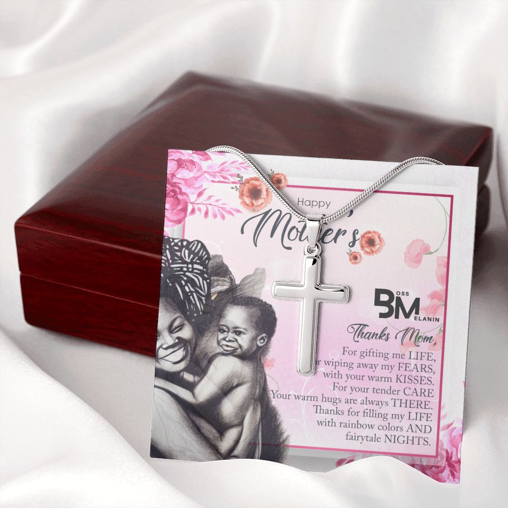 Stainless Steel Necklace for a Beautiful pregnant Black Mom, Melanin Black Mother special stainless steel cross Necklace with unique Gift card message