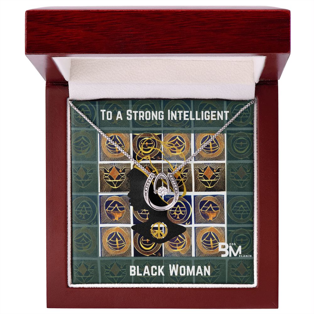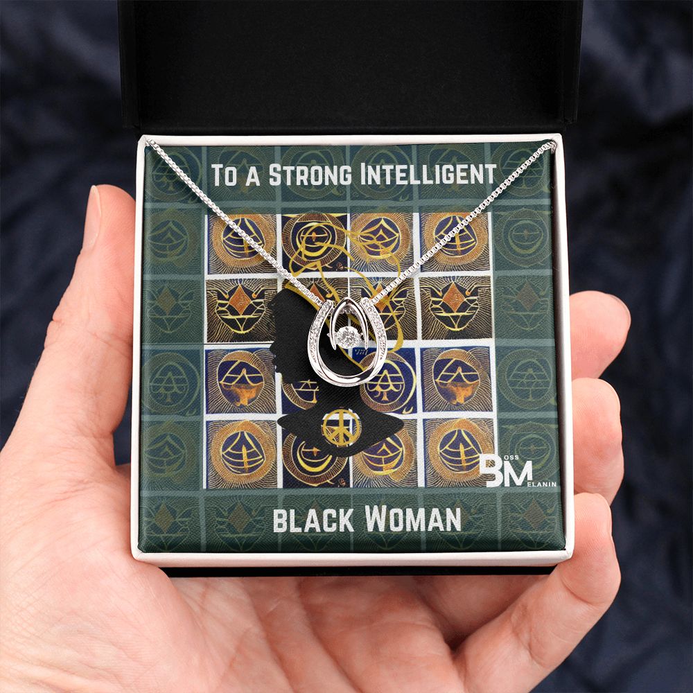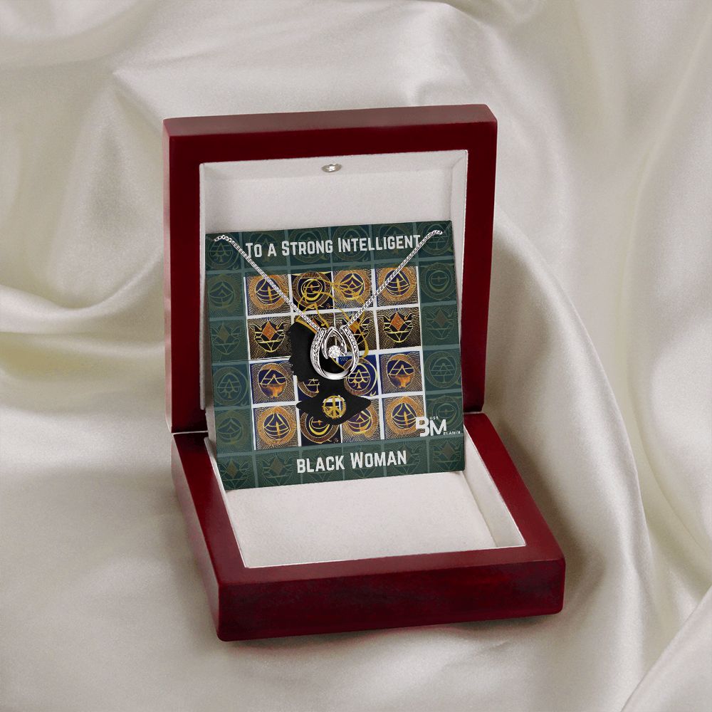 White gold dipped high quality crystal encrusted Love pendant & necklace chain with Zirconia for Beautiful, strong Black Woman, Melanin Black woman, with unique Gift card message.