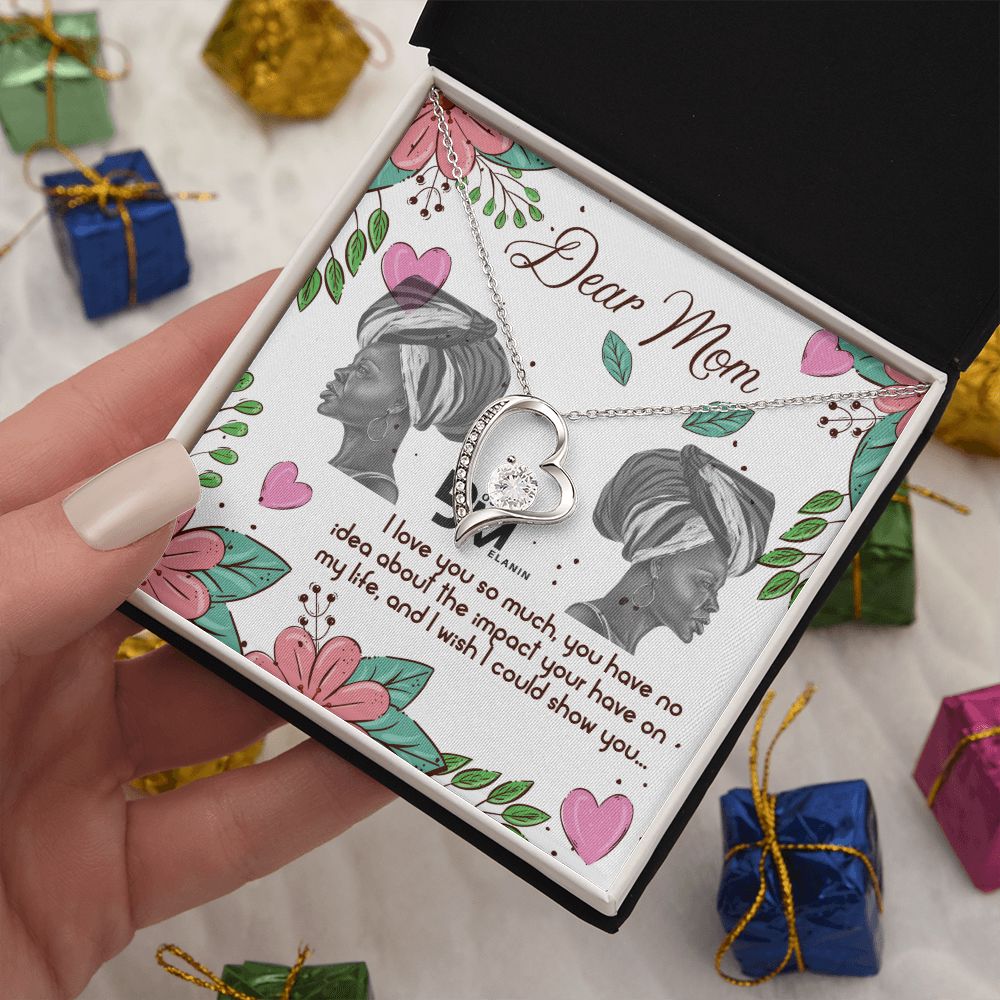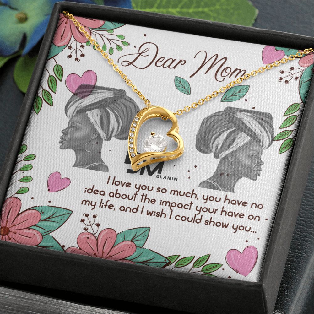 To My Beautiful Black Mom, Melanin Black Mother special Heart Shaped White Gold Necklace with unique Gift card message